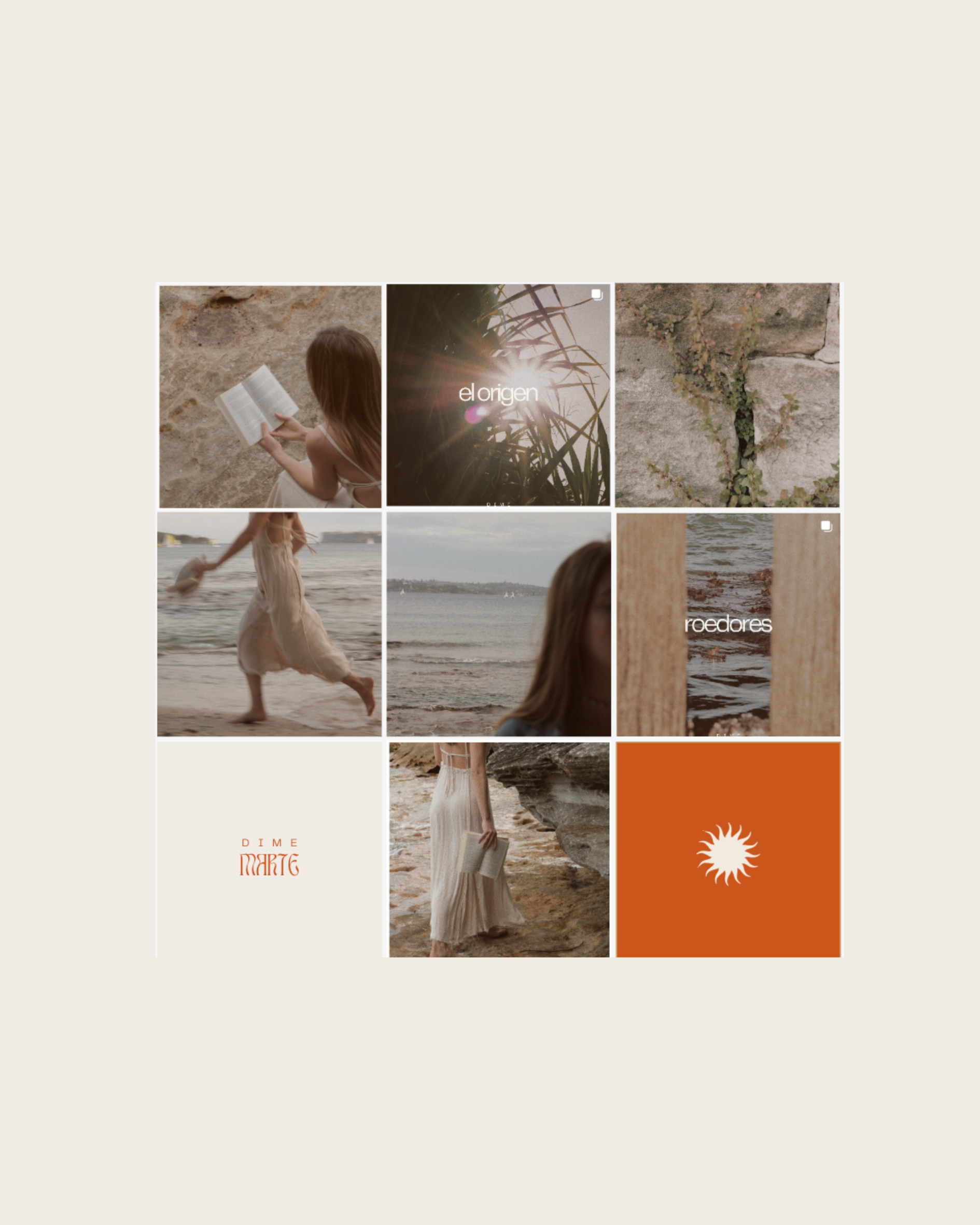Con Sofi diseñamos juntas su marca desde cero. Tres palabras que representan Dime Marte: intensidad, sentir y despliegue. Resultado > Una identidad lúdica y poderosa anclada a la energia de Sofi y su forma de escribir. Fotos en movimiento, expresivas que narran sus historias.